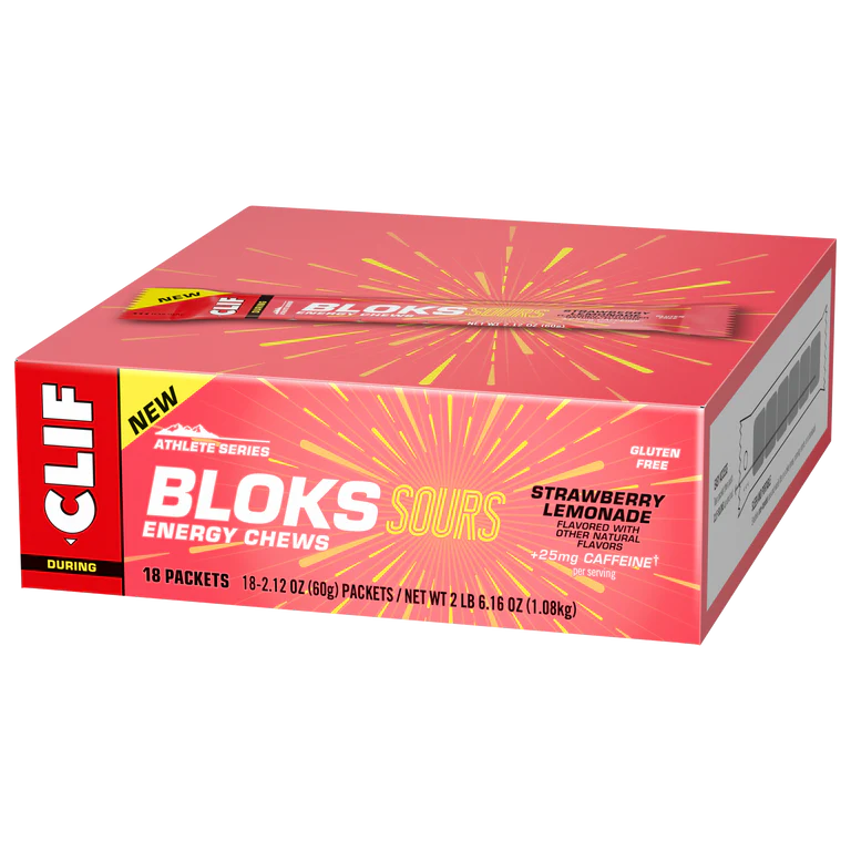 Made by athletes for athletes, CLIF BLOKS SOURS Strawberry Lemonade Flavor Energy Chews are a delicious source of quick carbohydrates and hydration support for fast fuel during marathon runs, games, cycling, and other high-intensity workouts. Bite-sized energy chews in portable packaging, CLIF BLOKS SOURS are made with plant based ingredients. With the sour zip of strawberry lemonade flavor to help fight sweetness overload and palate fatigue, plus a soft, not-too-sticky texture, these energy chews for running and more also energize your taste buds. CLIF BLOKS chews are gluten-free, non-GMO, and contain no high-fructose corn syrup or artificial flavors.