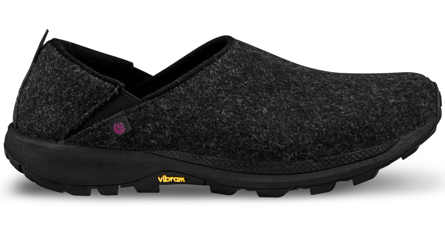 Topo recovery shoes deliver soothing comfort and relief with every step. Designed to be worn without socks, the repeated ridges of our 3D Wave Sense footbed powered by Ortholite® lightly stimulates and massages the nerves along the bottom of the foot. The antimicrobial blended wool upper naturally resists odor and provides a warm, comfortable fit. The Vibram® XS Trek EVO outsole offers multi-surface traction and durability for a variety of activities and daily wear year-round. Like all Topo shoes, our recovery footwear features our signature roomy toe box.